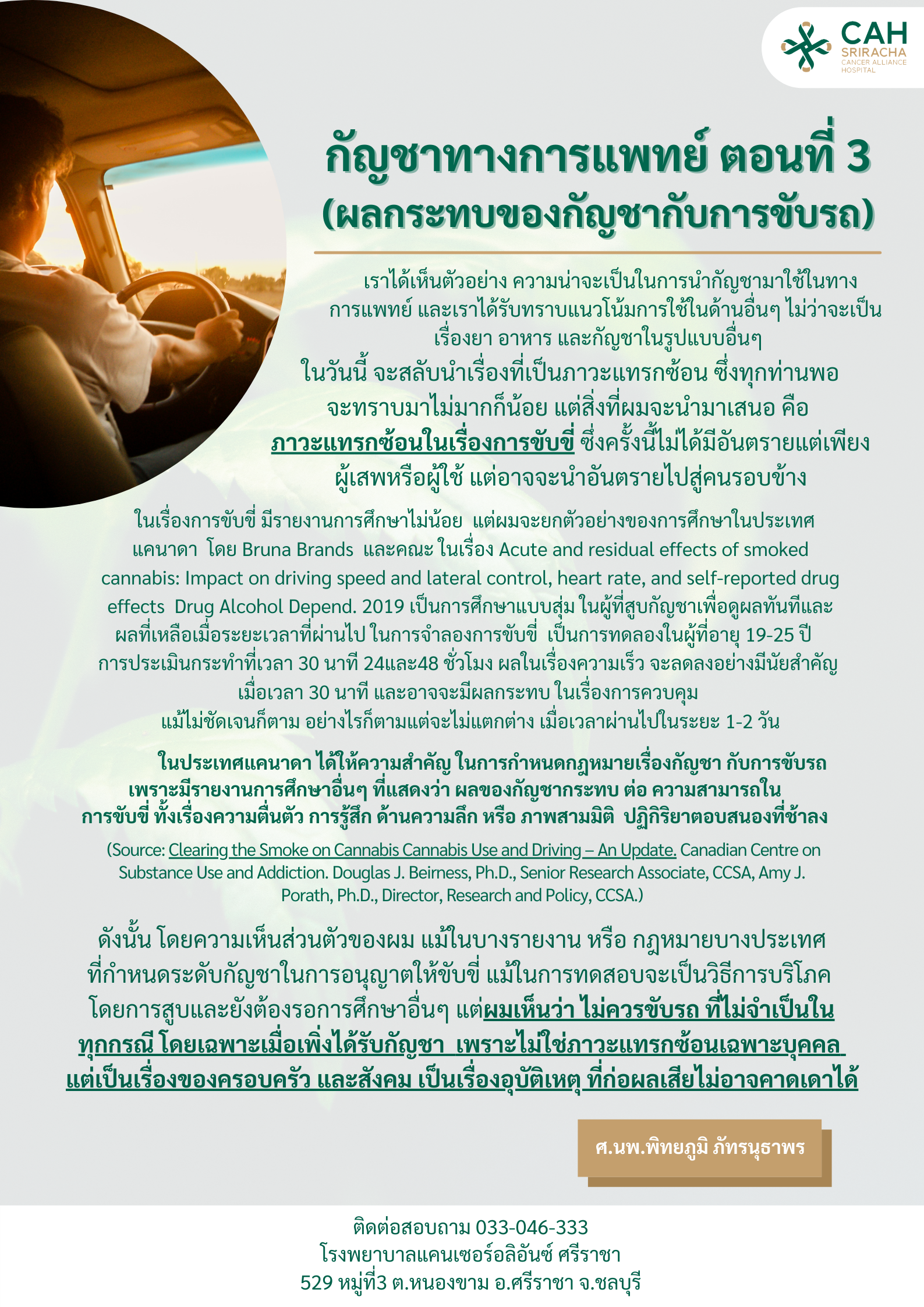 โรงพยาบาลแคนเซอร์อลิอันซ์ ศรีราชา ได้ตระหนักถึง คุณอนันต์ของกัญชา