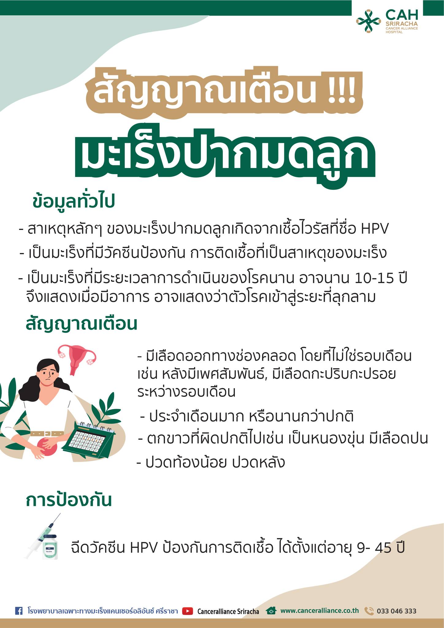 • เป็นมะเร็งที่มีวัคซีนป้องกัน การติดเชื้อที่เป็นสาเหตุของมะเร็ง